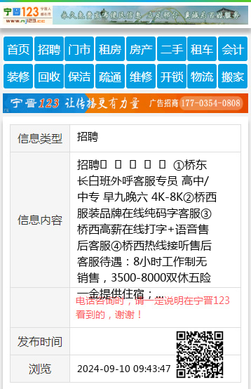 招聘 ①桥东长白班外呼客服专员 高中/中专 早九晚六 4K-8K②桥西服装品牌在线纯码字客服③桥西高薪在线打字+语音售后客服④桥西热线接听售后客服待遇:8小时工作制无销售,3500-8000双休五险一金提供住宿;要求:20-35岁,高中/中专有毕业证;联系: 16633966915/17633190052 聘