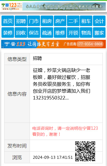 征婚,炒菜火锅店缺少一老板娘,最好做过餐饮,招服务员收银员服务生,如你有创业开店的梦想请加入我们132319550322