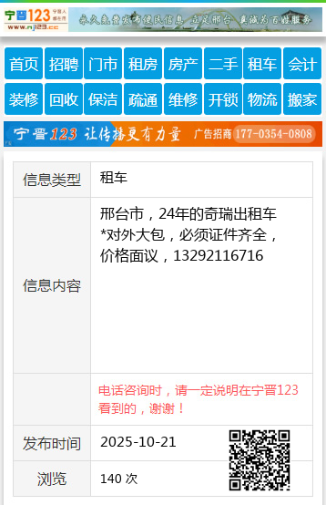 本人有出租车一辆:可接邢台地区长短途,省内外往返长短途,有需要可电联。价格实惠。18531920132
