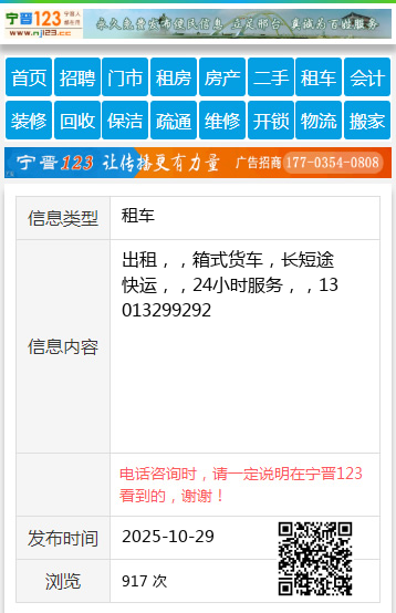 出租,,箱式货车,长短途快运,,24小时服务,,13013299292