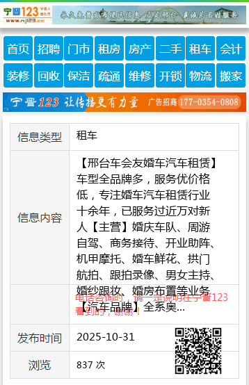 【邢台车会友婚车汽车租赁】车型全品牌多,服务优价格低,专注婚车汽车租赁行业十余年,已服务过近万对新人【主营】婚庆车队、周游自驾、商务接待、开业助阵、机甲摩托、婚车鲜花、拱门航拍、跟拍录像、男女主持、婚纱跟妆、婚房布置等业务【汽车品牌】全系奥迪、宝马、奔驰、路虎、保时捷、玛莎拉蒂、宾利、劳斯莱斯、中巴大巴及各色炮车。【我们秉承】价低车新,准点守时,以车会友的原则服务每一位客户,车会友坚持客户至上用心服务,您的满意是我们永恒的追求联系电话:0319-3178078, 18831902370(同微信) |
