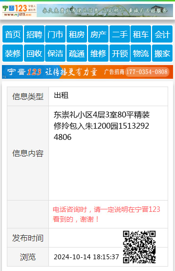 东崇礼小区4层3室80平精装修拎包入朱1200园15132924806