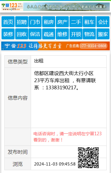 信都区建设西大街太行小区 23平方车库出租 ,有意请联系 :13383190217。