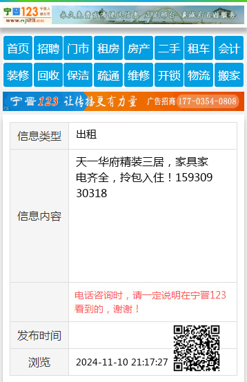 天一华府精装三居,家具家电齐全,拎包入住!15930930318