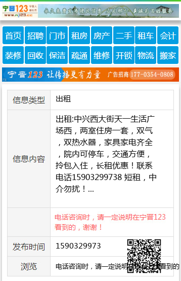 出租:中兴西大街天一生活广场西,两室住房一套,双气,双热水器,家具家电齐全,院内可停车,交通方便,拎包入住,长租优惠!联系电话15903299738 短租,中介勿扰!