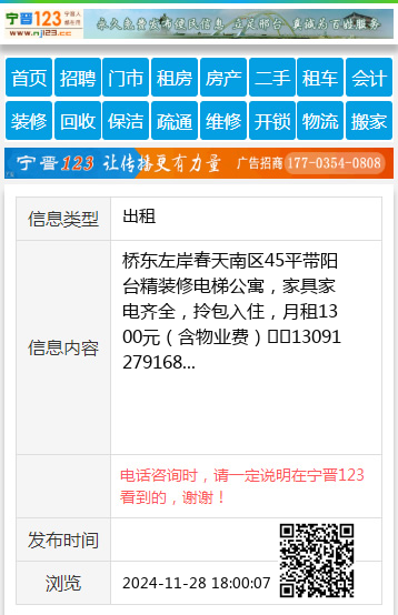 桥东左岸春天南区45平带阳台精装修电梯公寓,家具家电齐全,拎包入住,月租1300元(含物业费)☎️13091279168 【电话咨询时,请一定说明在邢台123看到的,谢谢!】 |