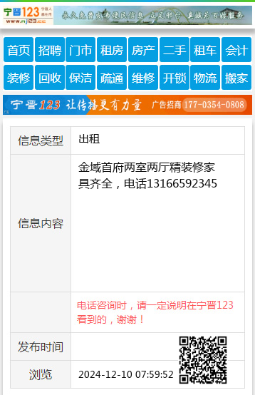 金域首府两室两厅精装修家具齐全,电话13166592345