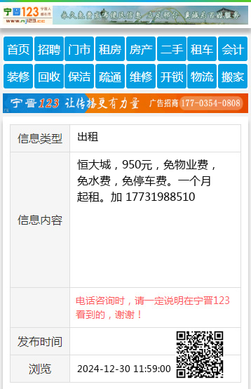 恒大城,950元,免物业费,免水费,免停车费。一个月起租。加 17731988510