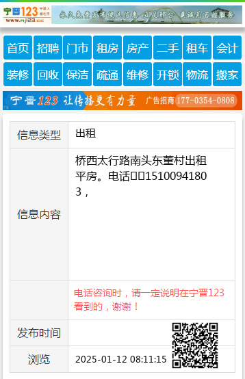 桥西太行路南头东董村出租平房。电话☎️15100941803,