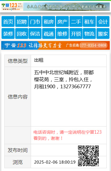 五中中北世纪城附近,丽都樱花苑,三室,拎包入住,月租1900,13273667777