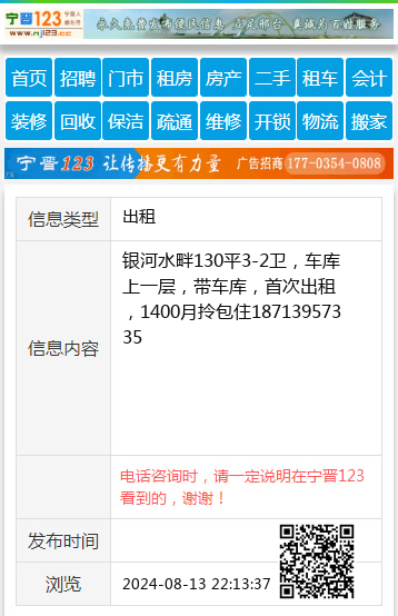 银河水畔130平3-2卫,车库上一层,带车库,首次出租,1400月拎包住18713957335