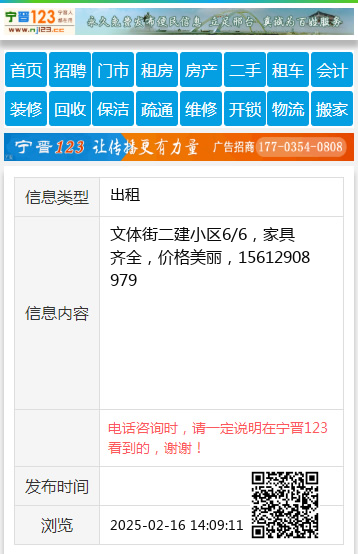 文体街二建小区6/6,家具齐全,价格美丽,15612908979