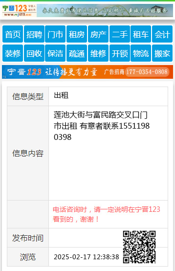 莲池大街与富民路交叉口门市出租 有意者联系15511980398
