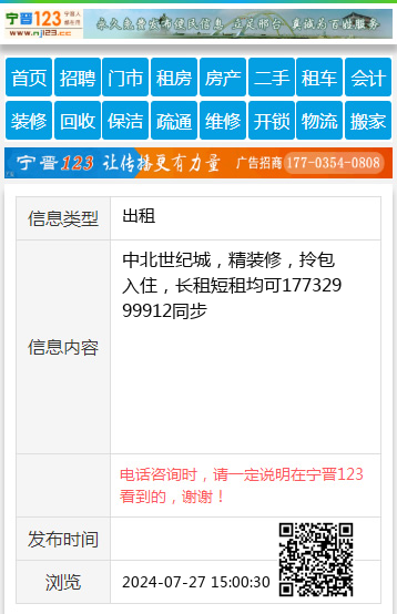 中北世纪城,精装修,拎包入住,长租短租均可17732999912同步