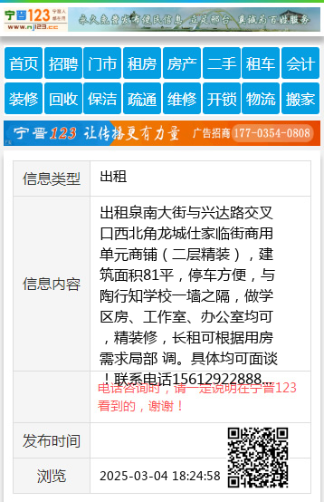 出租泉南大街与兴达路交叉口西北角龙城仕家临街商用单元商铺(二层精装),建筑面积81平,停车方便,与陶行知学校一墙之隔,做学区房、工作室、办公室均可,精装修,长租可根据用房需求局部 调。具体均可面谈!联系电话15612922888