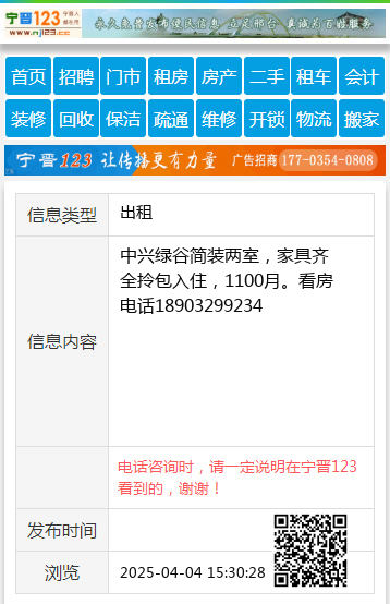中兴绿谷简装两室,家具齐全拎包入住,1100月。看房电话18903299234