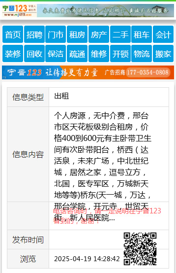 电话咨询时,请一定说明在邢台123看到的,谢谢! |