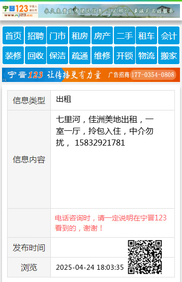 七里河,佳洲美地出租,一室一厅,拎包入住,中介勿扰, 15832921781