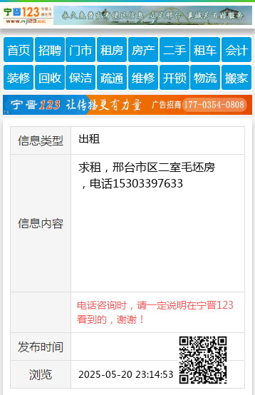 求租,邢台市区二室毛坯房,电话15303397633