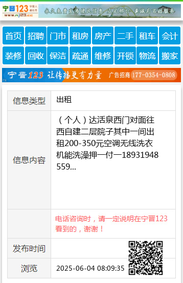 (个人)达活泉西门对面往西自建二层院子其中一间出租200-350元空调无线洗衣机能洗澡押一付一18931948559 【电话咨询时,请一定说明在邢台123看到的,谢谢!】 |