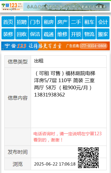 (可租 可售)福林庭院电梯洋房5/7层 110平 简装 三室两厅 58万 (租900元/月) 13831938362 【电话咨询时,请一定说明在邢台123看到的,谢谢!】 |