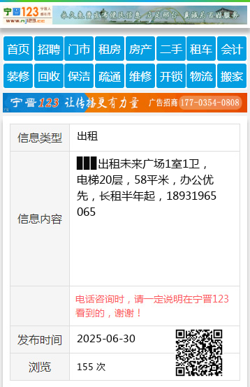 ▉▉▉出租未来广场1室1卫,电梯20层,58平米,办公优先,长租半年起,18931965065
