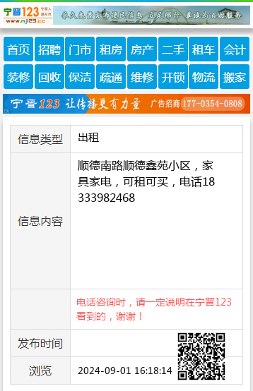 顺德南路顺德鑫苑小区,家具家电,可租可买,电话18333982468