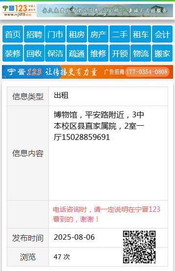 博物馆,平安路附近,3中本校区县直家属院,2室一厅15028859691