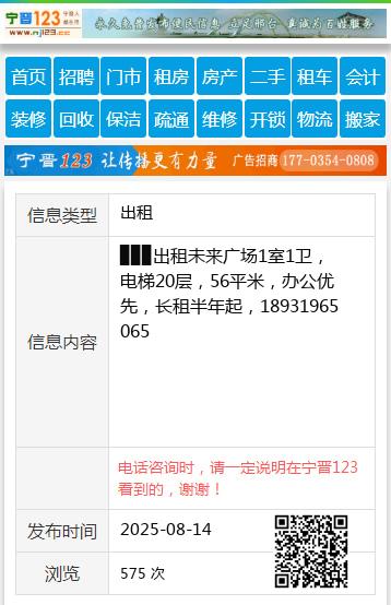 ▉▉▉出租未来广场1室1卫,电梯20层,56平米,办公优先,长租半年起,18931965065
