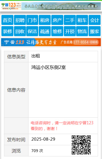 出租 东联阳光尚城 简装 三室 带地上小房 简单家具家电 900元/月 电话17703296540