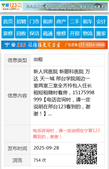 【电话咨询时,请一定说明在邢台123看到的,谢谢!】