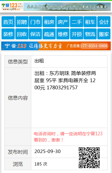 出租:东方明珠 简单装修两居室 95平 家具电器齐全 1200元 17803291757
