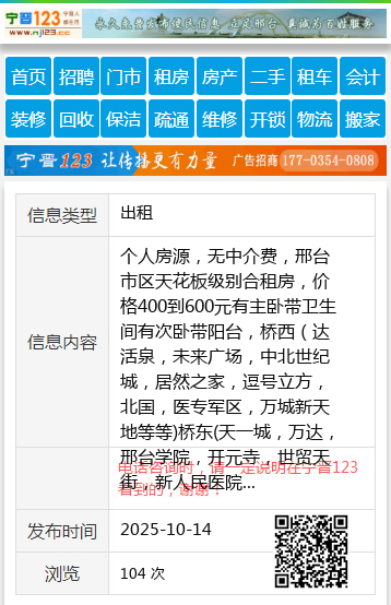 电话咨询时,请一定说明在邢台123看到的,谢谢! |