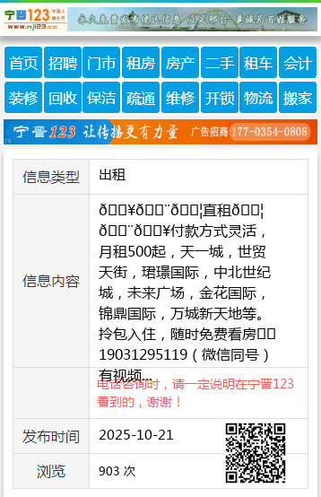 🟥🟨🟦直租🟦🟨🟥付款方式灵活,月租500起,天一城,世贸天街,珺璟国际,中北世纪城,未来广场,金花国际,锦鼎国际,万城新天地等。拎包入住,随时免费看房☎️19031295119(微信同号)有视频