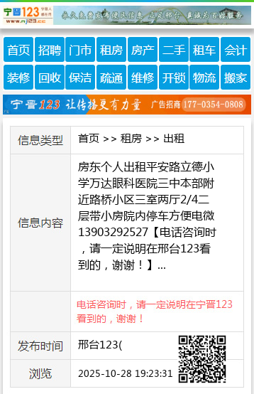 房东个人出租平安路立德小学万达眼科医院三中本部附近路桥小区三室两厅2/4二层带小房院内停车方便电微13903292527 【电话咨询时,请一定说明在邢台123看到的,谢谢!】 |