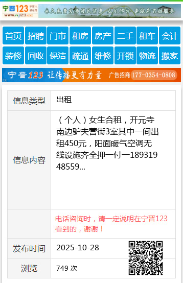 (个人)女生合租,开元寺南边驴夫营街3室其中一间出租450元,阳面暖气空调无线设施齐全押一付一18931948559 【电话咨询时,请一定说明在邢台123看到的,谢谢!】 |