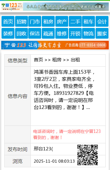 鸿溪书香园车库上面153平,3室2厅2卫,家具家电齐全,可拎包入住。物业费低,停车方便。18931927829 【电话咨询时,请一定说明在邢台123看到的,谢谢!】 |