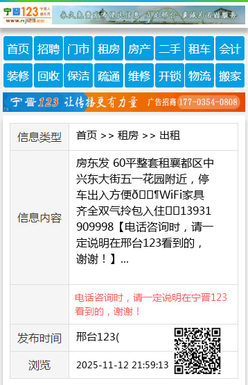 房东发 60平整套租襄都区中兴东大街五一花园附近,停车出入方便🈶WiFi家具齐全双气拎包入住☎️13931909998 【电话咨询时,请一定说明在邢台123看到的,谢谢!】 |