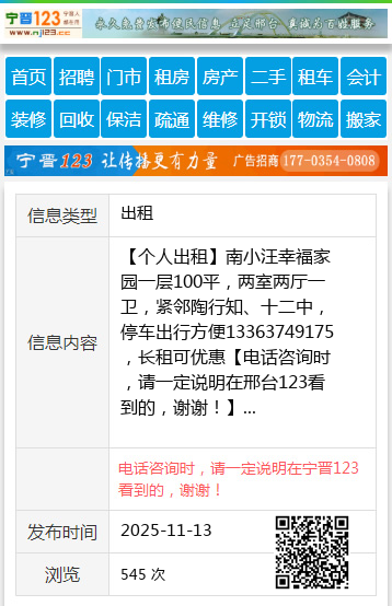 【个人出租】南小汪幸福家园一层100平,两室两厅一卫,紧邻陶行知、十二中,停车出行方便13363749175,长租可优惠 【电话咨询时,请一定说明在邢台123看到的,谢谢!】 |