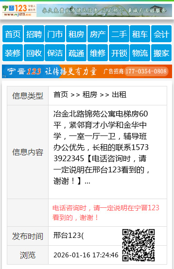 冶金北路锦苑公寓电梯房60平,紧邻育才小学和金华中学,一室一厅一卫,辅导班办公优先,长租的联系15733922345 【电话咨询时,请一定说明在邢台123看到的,谢谢!】 |